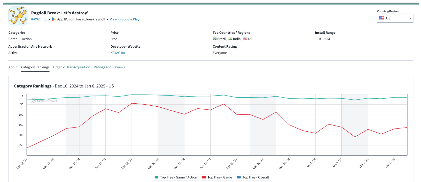 I played Ragdoll Break: Let's destroy! which is one of KAYAC's current most popular games, even recently reaching the #2 free action game per third-party analytics platform SensorTower.