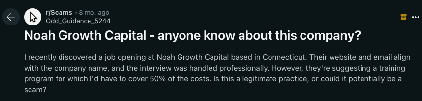 A Reddit post also discussed how an internship job listing (in New York City, not Connecticut) for NGC entailed an interview where they asked the candidate to cover ~50% of the cost for this training opportunity.