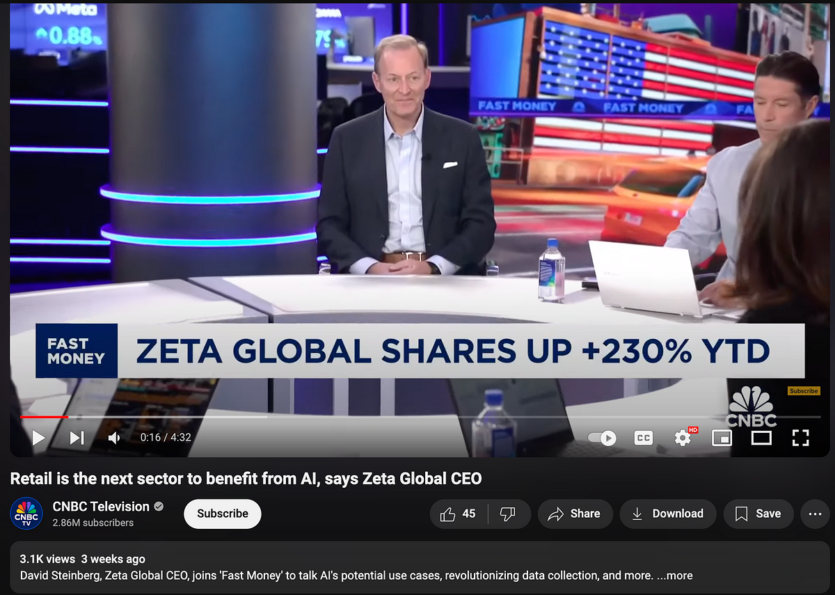 Zeta is the underbelly of the internet — Indian sweatshop spam emails, political blog comment sections used as cookies, and false AI stories, and this is before we get to the fact that Zeta’s CEO divorced his wife, impregnated an adult entertainer, and then married the adult entertainer.