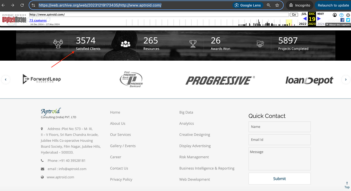 Aptroid is clearly a long-term fraud run by Zeta Global out of Hyderabad, India. These are embarrassingly simple data checks Zeta Global does not pass and there are fraudulent marketing claims about capabilities and customer counts from a publicly traded company on the New York Stock Exchange.
